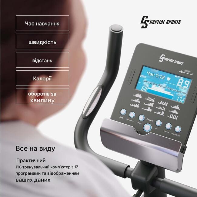 Окрім мультимедійних можливостей тренувань, кардіобайк Capital Sports Helios також вражає високоякісними технологіями: насолоджуйтесь чудовим комфортом тренувань від початку до кінця завдяки надзвичайно низькій конструкції, що забезпечує легкий та безпечний сідання та з'їзд. Система MagResist з 32 рівнями опору задовольняє практично будь-які потреби тренувань. Вбудований тренувальний комп'ютер пропонує 12 різноманітних програм, а також можливість тренування на основі сили або частоти серцевих скорочень. Вбудований тримач для планшета на кермі допомагає запобігти нудьзі на велотренажері. Він забезпечує ідеальне місце для вашого смартфона, планшета або електронної книги, дозволяючи вам використовувати додаток Kinomap або просто дивитися фільми, слухати музику чи читати під час тренування. Якщо у вас немає смарт-пристрою, ви також можете відстежувати дані своїх тренувань на кардіобайку Capital Sports Helios за допомогою традиційного тренувального комп'ютера. Окрім пройденої відстані, часу тренування та спалених калорій, він також відображає ваш серцевий ритм безпосередньо завдяки вбудованим датчикам для рук. І нарешті, надзвичайно тиха система SilentBelt гарантує , що ваше тренування нікого не завадить.