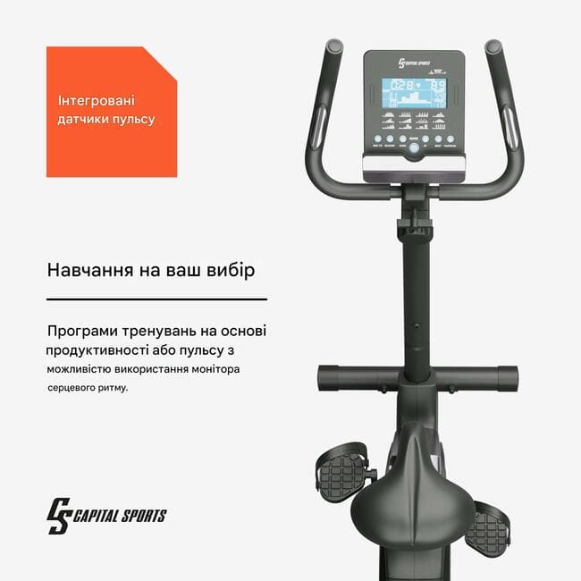 Практичні характеристики: ручки з датчиками пульсу, нековзні педалі та надійна опора завдяки вирівнюванню підлоги.
