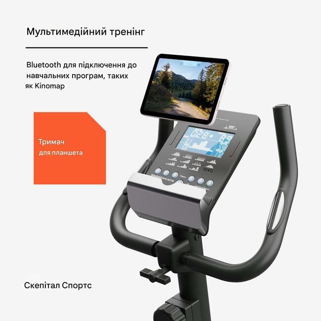 Мультимедійне тренування: вбудований тримач для планшета та підключення до фітнес-додатків, таких як Kinomap