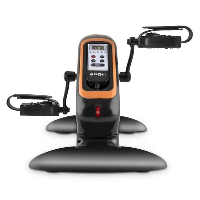 Cycloony MiniBike від Klarfit є ідеальним фітнес-пристроєм для тих, хто має мало місця або хоче зробити щось корисне для свого тіла сидячи. Тренуйте м'язи ніг або рук легко і практично самостійно - незалежно від того, на роботі ви чи вдома. Завдяки моторній роботі немає необхідності починати або зосереджуватися на вправах. Після запуску педалі обертаються з постійною швидкістю, автоматично захоплюючи руки або ноги користувача. Рівномірні рухи не тільки покращують м’язи та витривалість, але також є ідеальним та м’яким тренуванням для серця та кровообігу, а також опорно-рухового апарату.