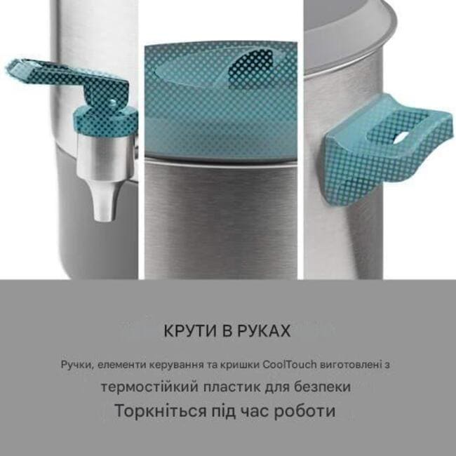 - Cool-Touch: ручки, елементи управління та кришки з термостійкого пластику для безпечного контакту під час роботи