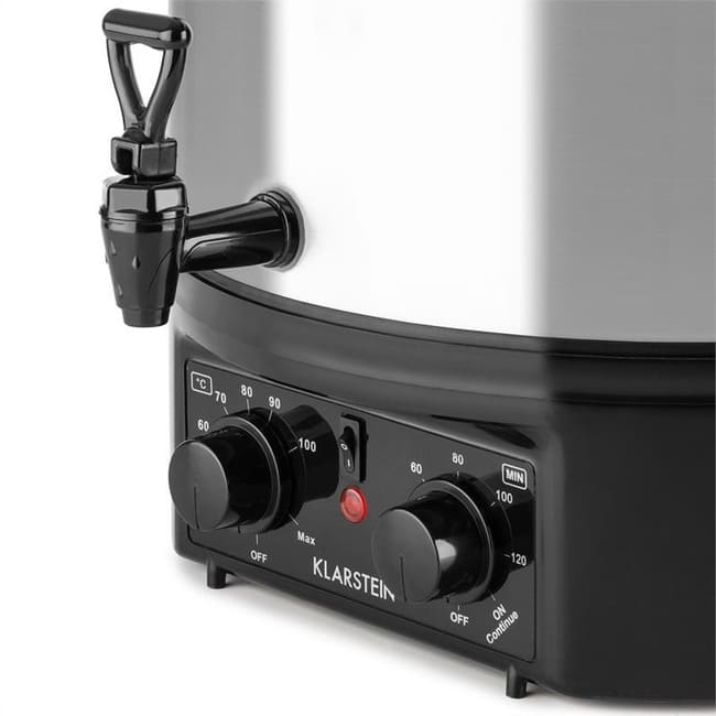 Повністю автоматична консервна машина Klarstein Biggie Small — це простий кухонний помічник, який дозволяє легко зберігати їжу натурально, смачно та здорово . Барвники та консерванти, цукрові бомби та продукти сумнівного походження залишилися в минулому у вашій коморі: домашня їжа завжди найсмачніша – незалежно від того, чи це фрукти та овочі, чи м’ясні та ковбасні вироби. Велика каструля з нержавіючої сталі об'ємом 16 літрів вміщує одночасно до 7 однолітрових банок. Температура та час приготування вибираються абсолютно нескладним способом за допомогою двох поворотних перемикачів, після чого повністю автоматична машина потужністю 2000 Вт працює повністю самостійно та автоматично вимикається, коли таймер закінчується. За допомогою практичного крана можна злити воду або набрати гарячого глінтвейну, чаю чи соку.
