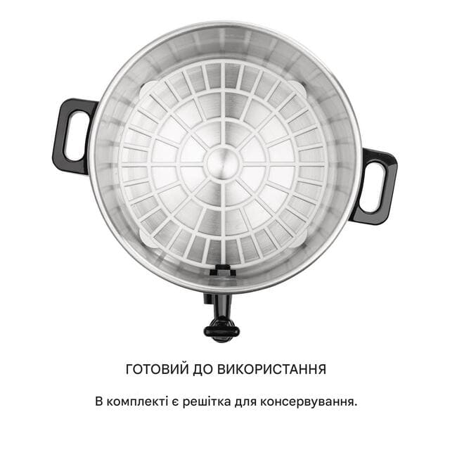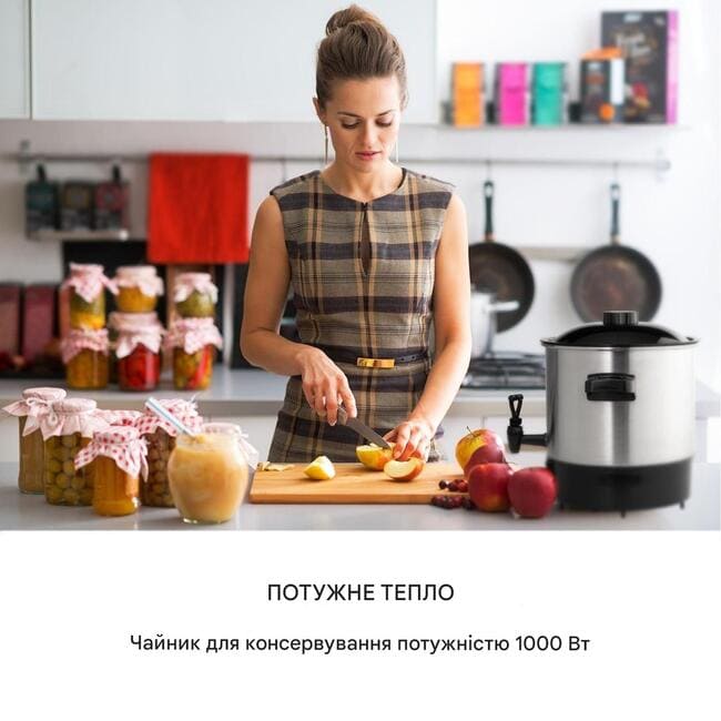 Операція дуже проста: наповнені банки в контейнері для консервування , додайте води, потім виберіть потрібну температуру від 30 до 100 °C, і все готово. Контейнер автоматично підтримує вибрану температуру, а функція захисту від перегріву забезпечує безпеку під час консервування та вимикає контейнер, якщо він стає занадто гарячим або вимикається.