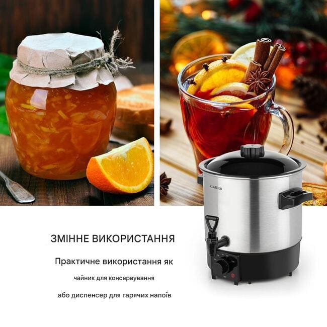 Сьогодні час консервувати: з машиною для консервування Klarstein Biggie Eco ви можете додати різноманітності до свого меню з тривалими перевагами. ємність об'ємом 9 літрів пропонує достатньо місця для нагрівання вмісту до трьох 1-літрових банок для тривалого зберігання. Чи то фрукти, овочі чи м'ясо, Biggie Eco консервує все.