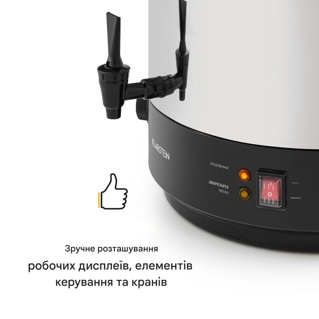 Пристрій 2-в-1: практичне використання як бойлер або пристрій для приготування гарячих напоїв та диспенсера для чаю, пуншу або глінтвейну.