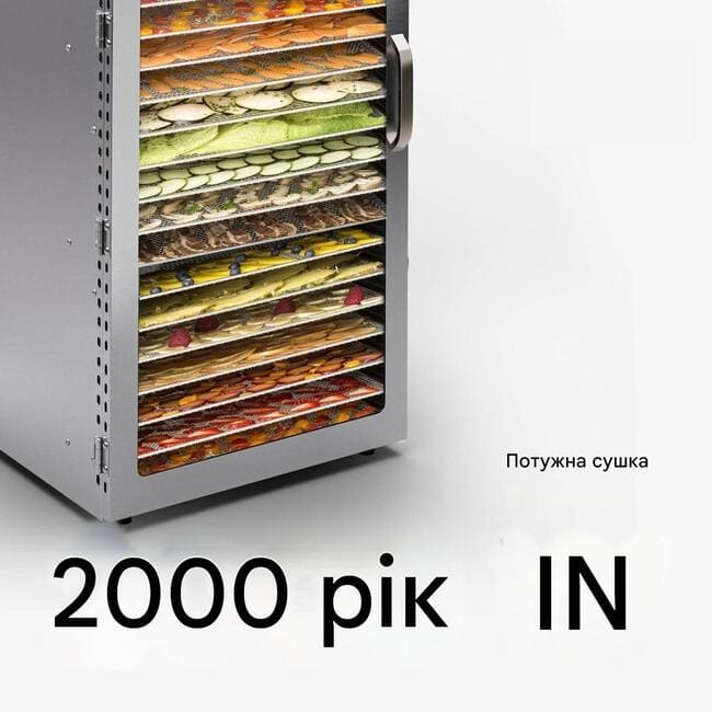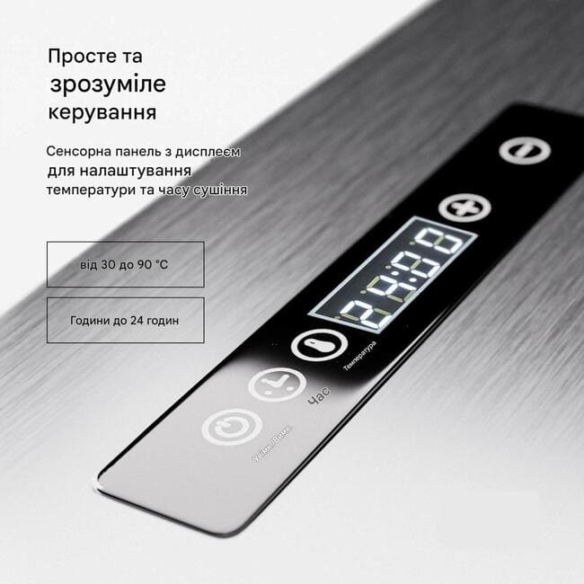 Автоматизована робота дегідратора оптимізує процес сушіння, мінімізуючи необхідність ручного втручання та заощаджуючи ваш час. Зручний інтерфейс полегшує керування, а міцна конструкція гарантує тривалий термін служби та надійність.
