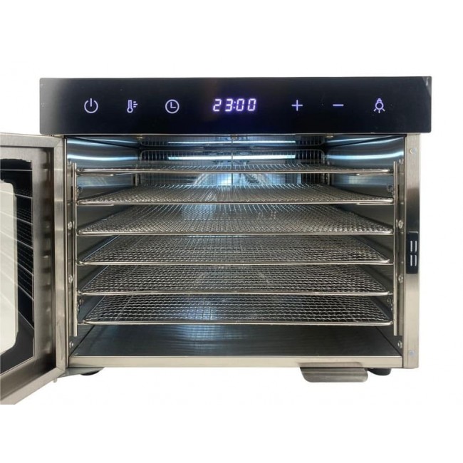 Автоматизована робота дегідратора оптимізує процес сушіння, мінімізуючи необхідність ручного втручання та заощаджуючи ваш час. Зручний інтерфейс полегшує керування, а міцна конструкція гарантує тривалий термін служби та надійність.