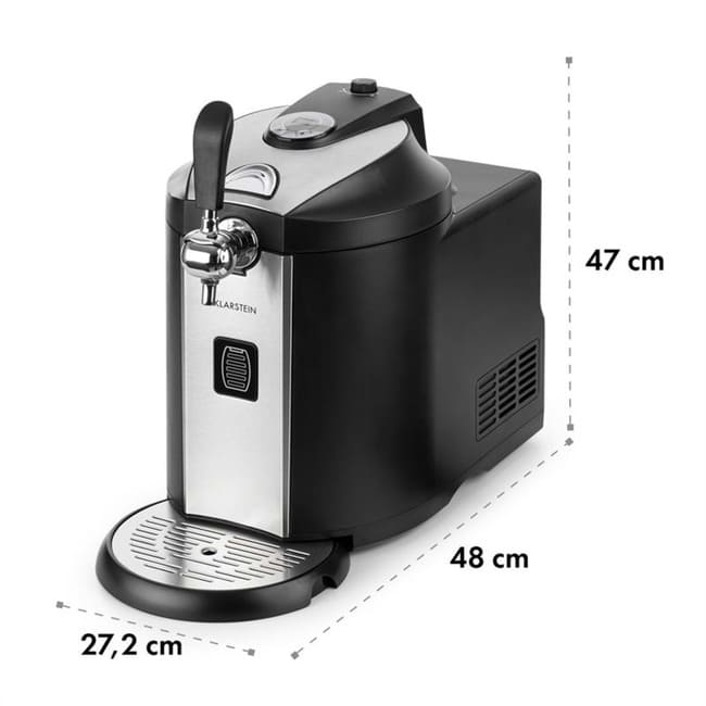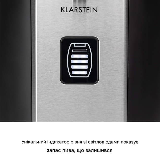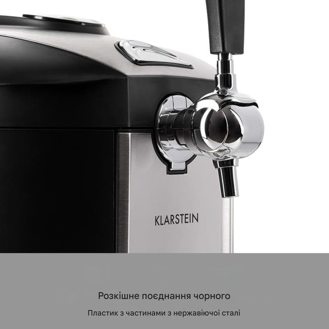 Найкращий смак відчувається свіжозлитим. Система розливу пива Klarstein Beerkules забезпечує постійне задоволення від хмелю з усіх 5-літрових кег для вечірок та свіжих кег, як з інтегрованою системою розливу, так і без неї. Її швидка охолоджувальна сила справді вражає: завдяки потужному охолоджувальному компресору з технологією UltraFast Cooling, система розливу охолоджує кеги кімнатної температури до прохолодної, приємної температури від 2 до 12 °C лише за 4 години – жодна інша система розливу не є швидшою! Бажана температура розливу легко встановлюється за допомогою 6 попередньо встановлених налаштувань або безпосередньо за градусом на світлодіодному дисплеї. Завдяки системі тиску в картриджах з CO2, пиво потім потрапляє в тюльпани, кухлі або кухлі з красивою пінистою шапкою. Три газові картриджі входять до комплекту постачання та забезпечують правильний тиск у лінії з самого початку. Для забезпечення легкого доступу до свіжих кег з інтегрованою системою розливу, які не потребують тиску CO2, у комплект постачання входить відповідний адаптер для підключення. Розумний індикатор рівня заповнення постійно інформує вас про рівень пива, що залишився в системі розливу, тому ніхто не залишається без напою. Свято для очей: Наша система розливу пива Klarstein Beerkules — це не просто насолода для смакових рецепторів. Вона стильно змодельована за зразком настільної системи з важелем розливу. Розкішні чорні пластикові деталі доповнюють корпус з матової нержавіючої сталі, забезпечуючи стильний вигляд на стійках, буфетах та в пивних наметах. Якщо під час розливу щось піде не так, піддон швидко та надійно все збереже.