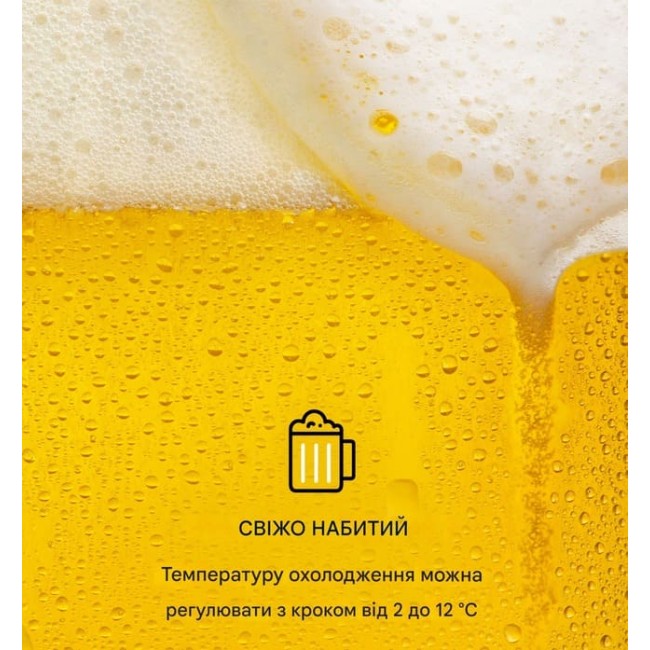 - РК-дисплей для відображення внутрішньої температури (фактична температура пива може відрізнятися)