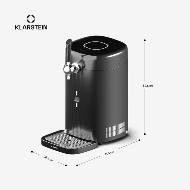Система розлива пива Klarstein FrostBrew вражає потужною системою тиску CO2, яка гарантує ідеальний тиск розливу для всіх стандартних 5-літрових кег. Інтегрована термоелектрична система охолодження забезпечує точний контроль температури від 3 до 12 °C, а додаткове водяне охолодження забезпечує ще швидше охолодження. До комплекту постачання входять три балончики CO2, що забезпечують необхідний тиск, й адаптер для під'єднання до стандартних кегів без CO2. Компактний, елегантний дизайн із практичним важелем крана та знімним піддоном для збирання крапель робить систему кранів FrostBrew ідеальним рішенням для кожного бармена-аматора, який завжди хоче запропонувати своїм гостям ідеально охолоджене пиво.