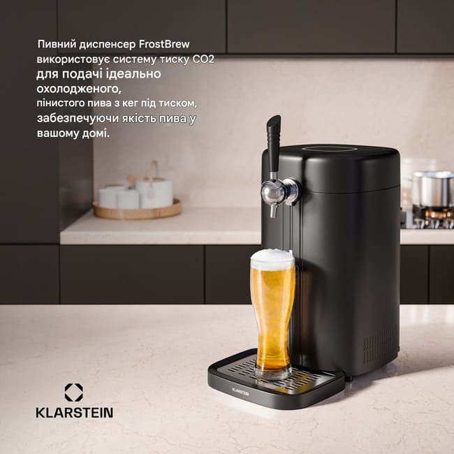 Насолоджуйтеся свіжорозливним пивом як професіонал — замовте систему розлива пива Klarstein FrostBrew для ідеальної насолоди пивом дому!
