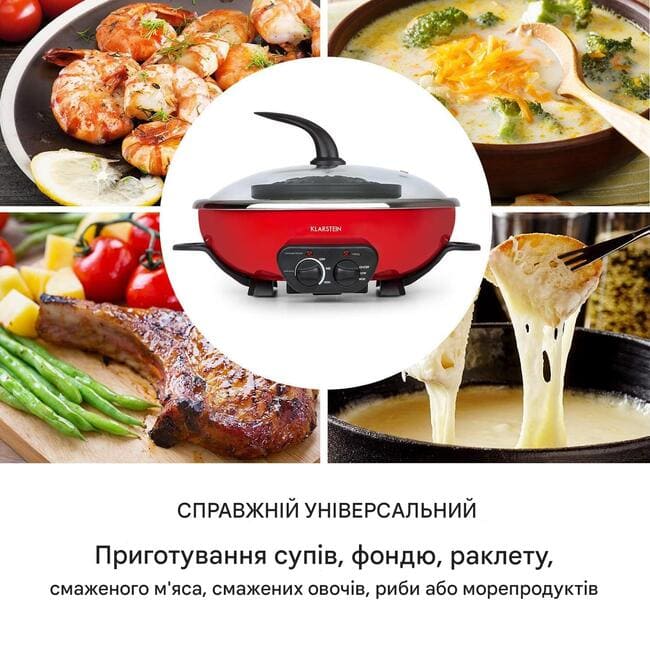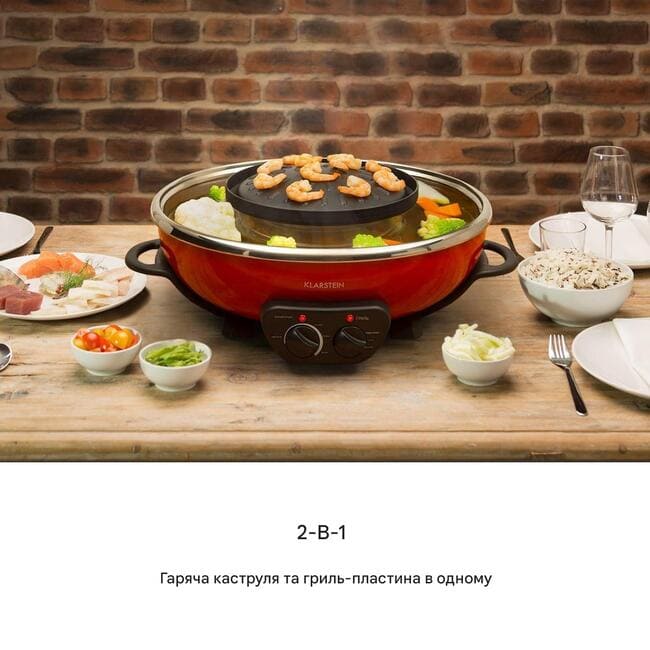 Klarstein Szechuan Hot Pot з гриль-тарілкою — чудовий кухонний прилад 2-в-1 для збору родини та друзів за столом для товариського та невимушеного застілля .