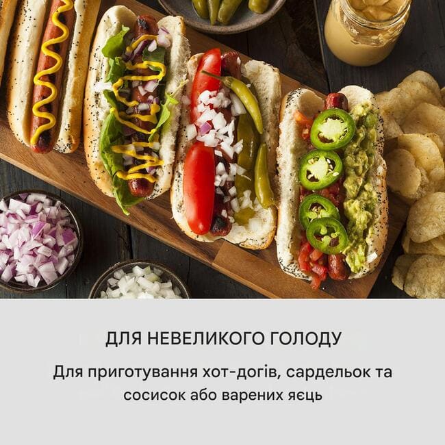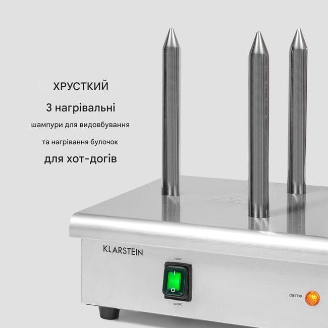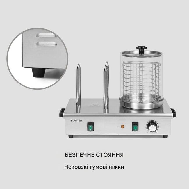Щоб трохи відчути голод між ними: апарат для приготування хот-догів Klarstein Wurstfabrik 600 наповнює булочки та булочки з хот-догами гарячими сосисками, таким чином збагачуючи пропозицію закусок у снек-барах, кіосках і пізніх барах.