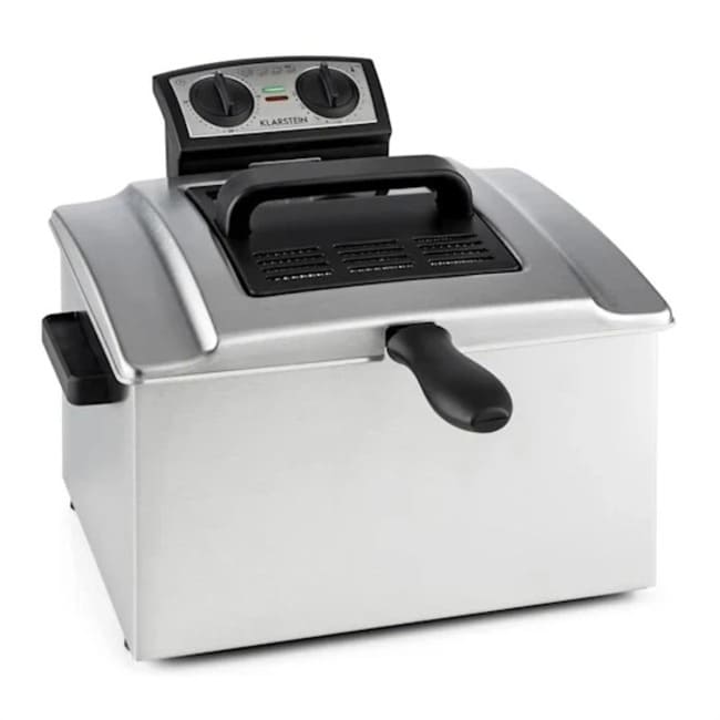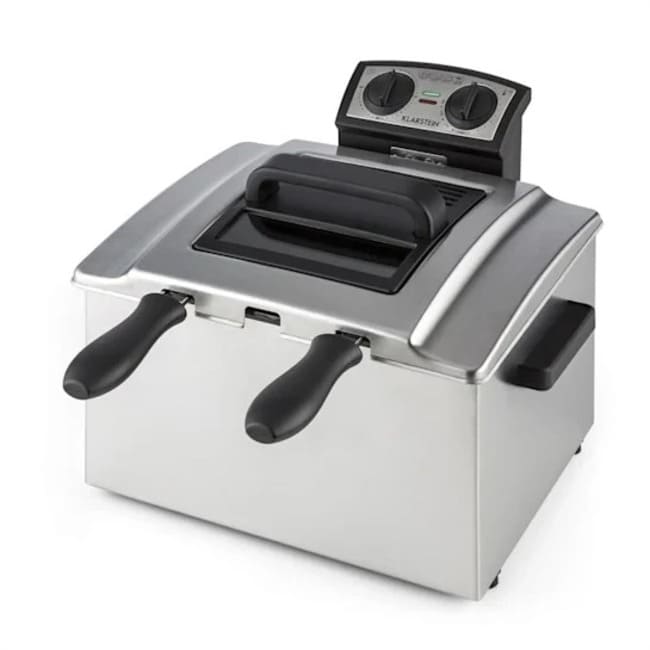 Для керування фритюрницею Klarstein використовуються два прості поворотні регулятори : один дозволяє вибрати температуру до максимум 190°C, а другий дозволяє встановити таймер до 30 хвилин, щоб кожен продукт смажиться на правильному вогні та тривалості. Система обігріву холодної зони також професійна. Це запобігає прилипанню чогось до дна, якщо їжа впаде з одного з кошиків у сковороду. Кришка з оглядовим віконцем, що кріпиться, запобігає розбризкуванню гарячої олії під час смаження та дозволяє стежити за їжею всередині.