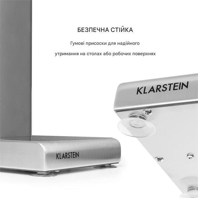- Надійна підставка: гумові ніжки-присоски для міцного утримання на столах або стільницях