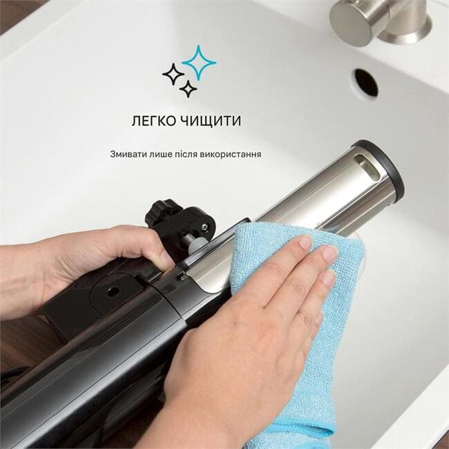Дисплей можна повернути на 180° і відрегулювати для читання в бажаному напрямку. Після приготування Quickstick Flex легко очищається способом ополіскування.