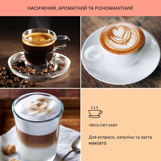 - Еспресо, капучіно та латте макіато: одним натисканням кнопки