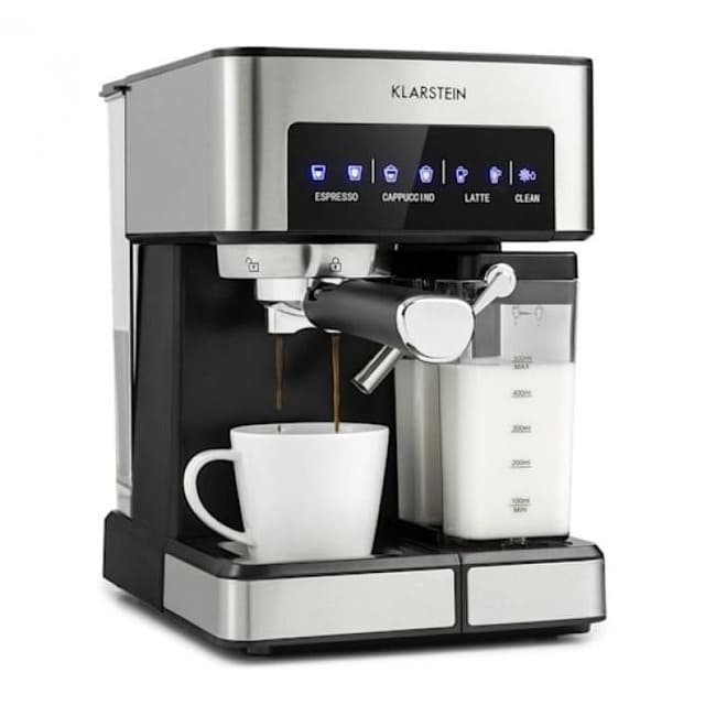 Для пристрасних любителів кави: насолоджуйтесь чудовим еспресо, капучіно та латте макіато одним натисканням кнопки з кавомашиною Klarstein Arabica Comfort . Завдяки насадці для спінювання з нержавіючої сталі 90° і знімному резервуару для молока ви можете будь-коли індивідуально регулювати виробництво молочної піни. Ви також можете заварювати мелену каву або використовувати практичну кавову подушечку для кожного приготування. Рівномірне очищення надзвичайно просте завдяки знімному резервуару для води об’ємом 1,8 літра та решітці для крапель, яку можна мити.