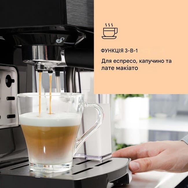 - Кавоварка 3 в 1: еспресо, капучіно & латте макіато