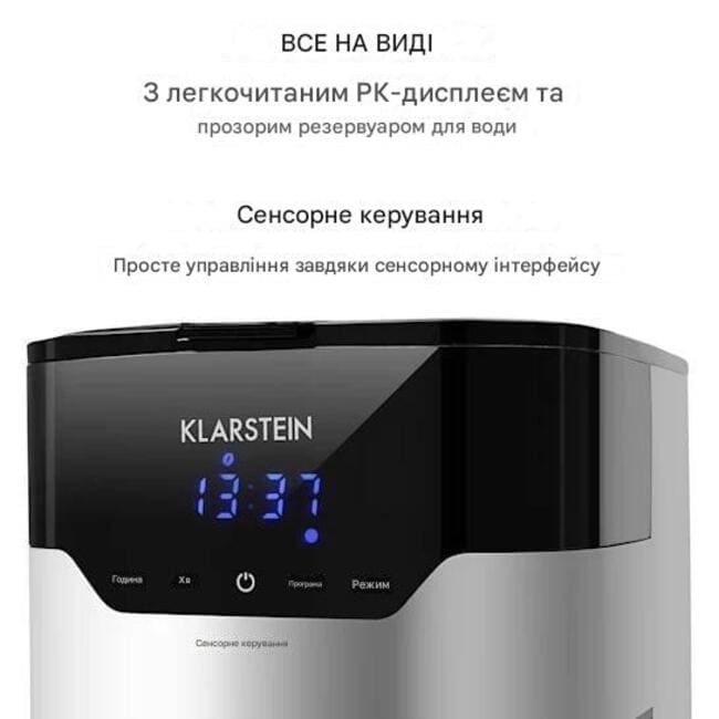 - Все з першого погляду: з РК-дисплеєм, який легко читається, і прозорим резервуаром для води