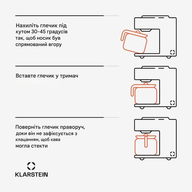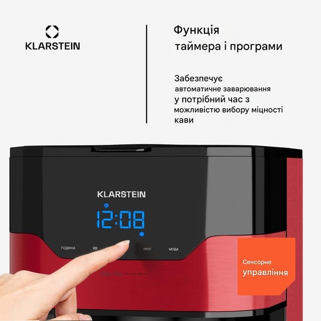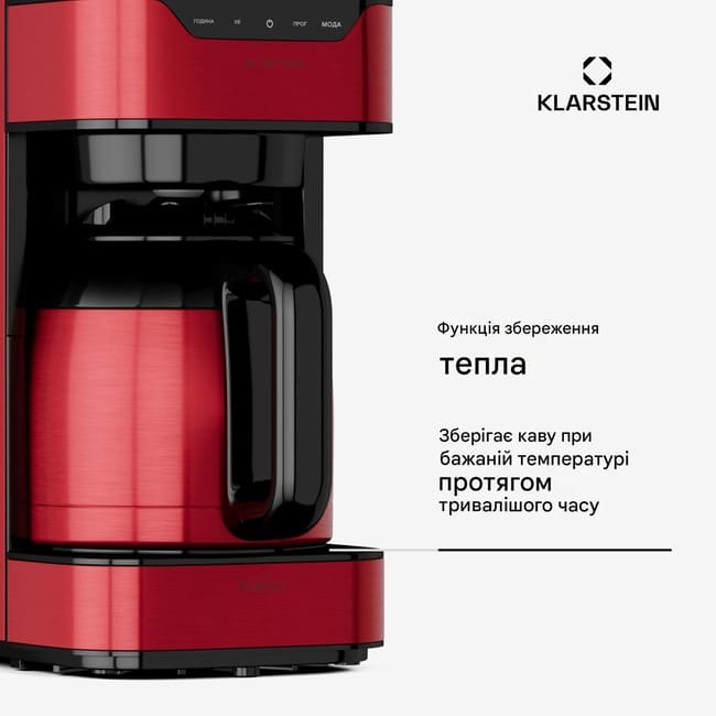 - Повний кавник: місткість — 1,2 л, вміщує до 12 чашок кави