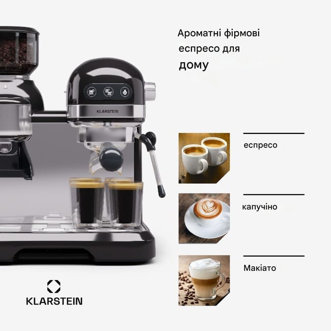 Відчуйте моменти насолоди, як у вашому улюбленому кафе: як професіонал, тому що з портафільтром Klarstein Bella Café ви самі станете професійним бариста.