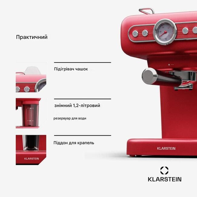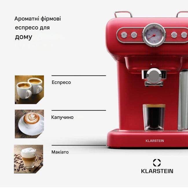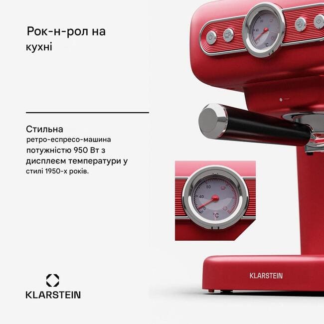 Завдяки екстраординарному ретро-дизайну еспресо-машина Espressionata Evo від Klarstein привертає увагу на кожній кухні та завжди вражає своєю свіжоприготовленою фірмовою кавою.