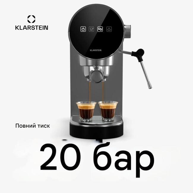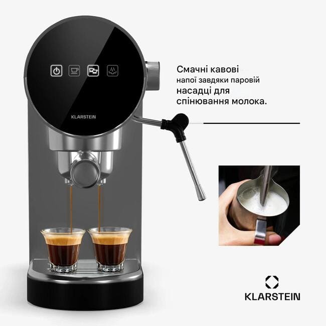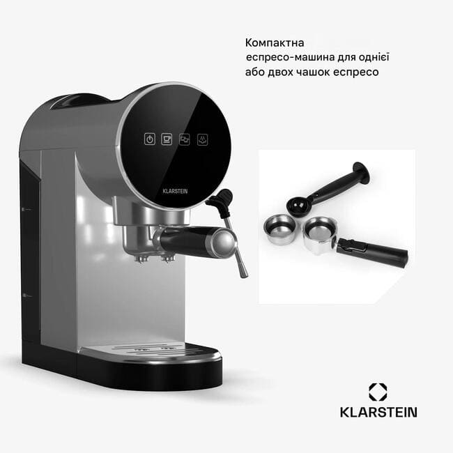 Кавоварка Klarstein Furore виправдовує свою назву . Елегантна кавова машина вражає – зовнішнім виглядом, функціональністю та смачними гарячими напоями.
