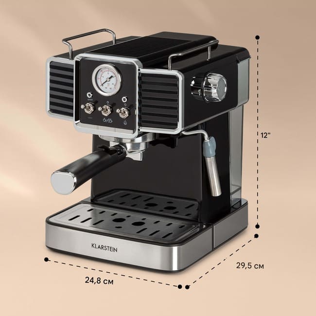 Кавоварка для приготування еспресо Gusto Classico від Klarstein не тільки зачаровує ваш смак потужною ароматною свіжозвареною кавою, але й справжнє свято для очей. Відчуйте спокусливий аромат, коли портафільтр-машина незвичайного ретро-дизайну з тиском 20 бар випромінює повний аромат кави. Еспресо-машина підходить як для меленої кави, так і для кавових капсул.