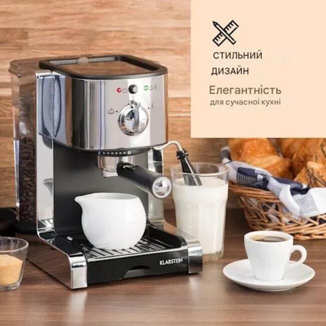 Klarstein Passionata 20 — це елегантна еспресо-машина з яскравим відчуттям функціональності та дизайну. Завдяки потужній потужності 1350 Вт і тиску 20 бар він розкриває повний аромат кави. З класичною машиною з портафільтром, виготовленою з нержавіючої сталі, можна використовувати як порошок кави чи еспресо, так і капсули кави та еспресо. За допомогою парової насадки ви зможете швидко створити кремову піну для гарячого напою. Ви можете заварювати дві чашки одночасно і підтримувати їх у теплі на верхній тарілці.