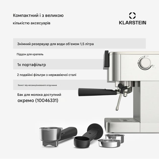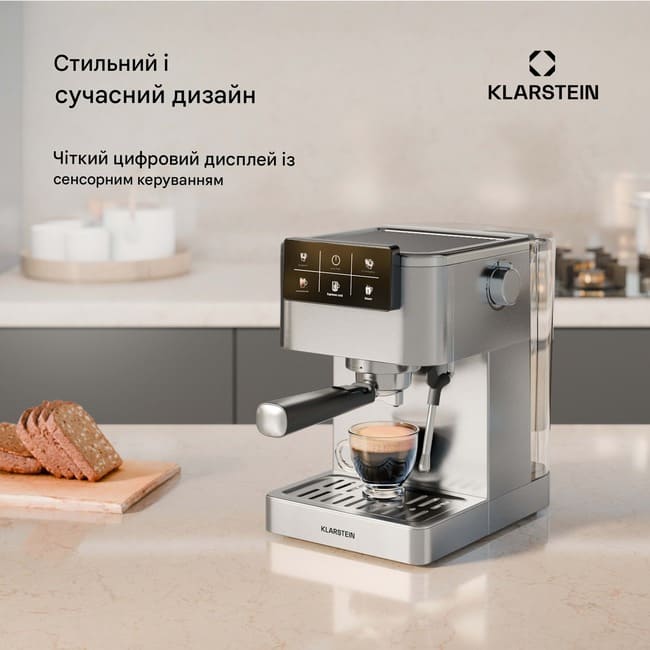 Відкрийте для себе розкіш ідеально приготованого еспресо – стильно та легко з портафільтром-кавоваркою SteelPresso Touch від Klarstein . Замовте зараз!