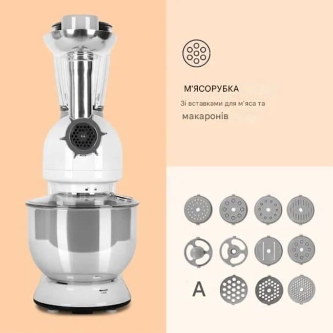 - 3 насадки: для розмішування, замішування та змішування