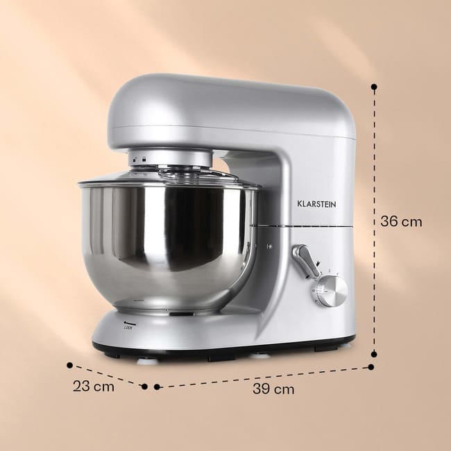 Потужний до останньої революції. Стати стильним на кухні легко з кухонними комбайнами Klarstein Bella . З потужністю 1800 Вт на 6 рівнях наша планетарна система змішування відповідає всім вимогам сучасного змішування. Хлібне тісто, збиті вершки чи пиріг з папугою: ви можете перемішати все в чаші з нержавіючої сталі об’ємом 5,2 літра з 3 гачками для змішування. Барвистий дизайн вашої нової Bella також є потужним. Це означає, що він може буди зіркою на вашій кухні навіть після використання!