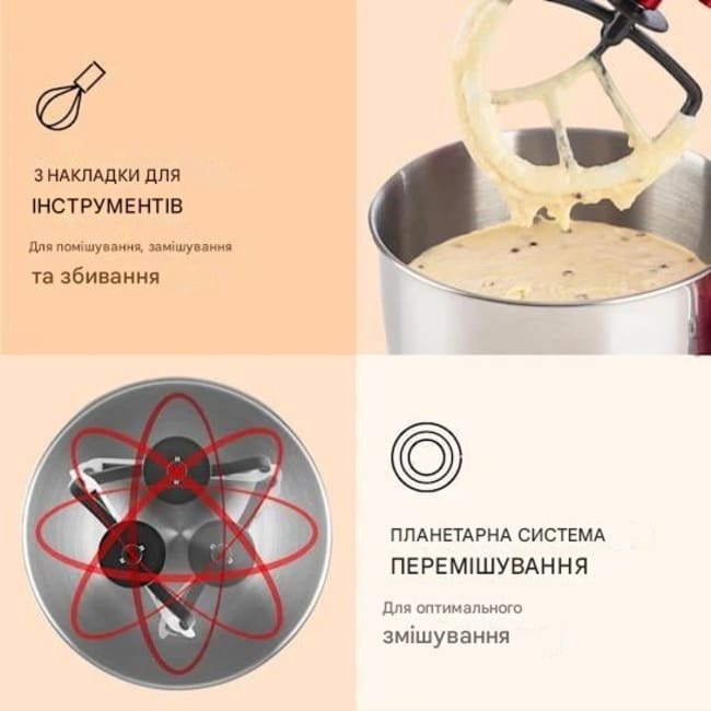 • 3 елементи для перемішування: гак для тіста/гачок для змішування/віночок