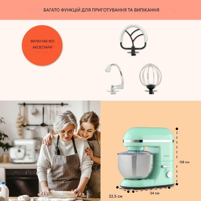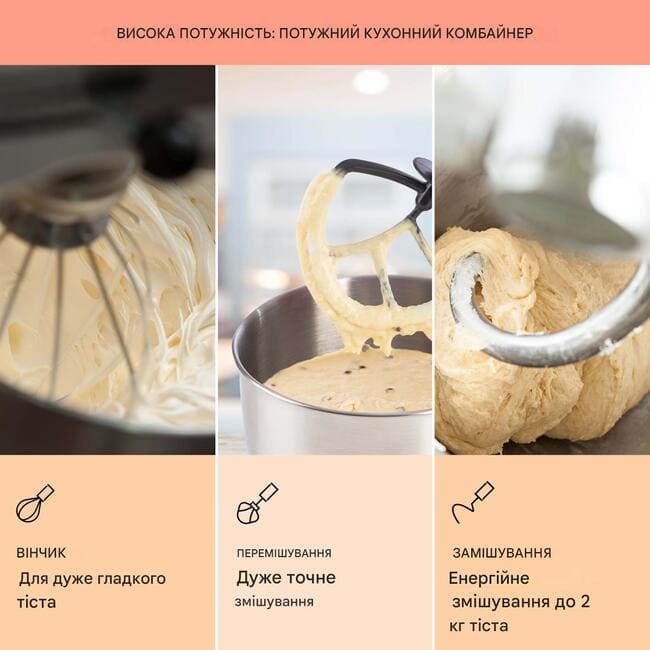 - 3 насадки: для перемішування, замісу та збивання