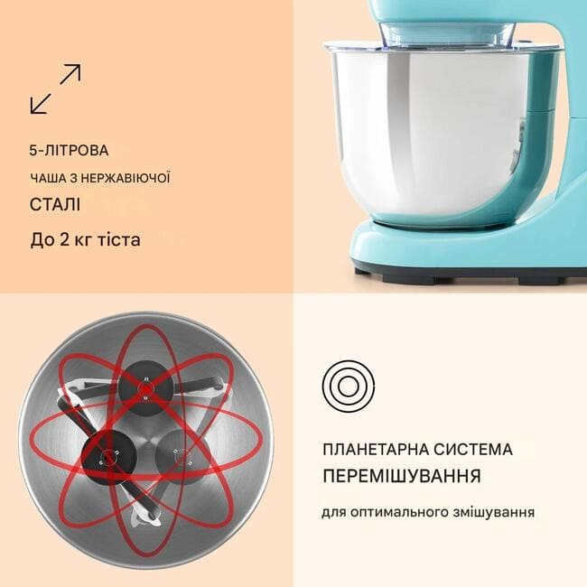 - Чаша для змішування виготовлена з міцної нержавіючої сталі