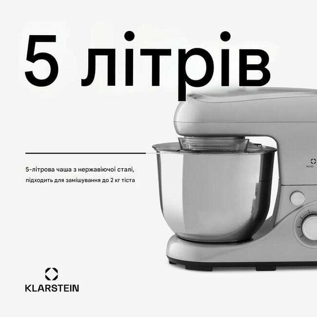 - 5-літрова миска з нержавіючої сталі: вміщує до 2 кг тіста