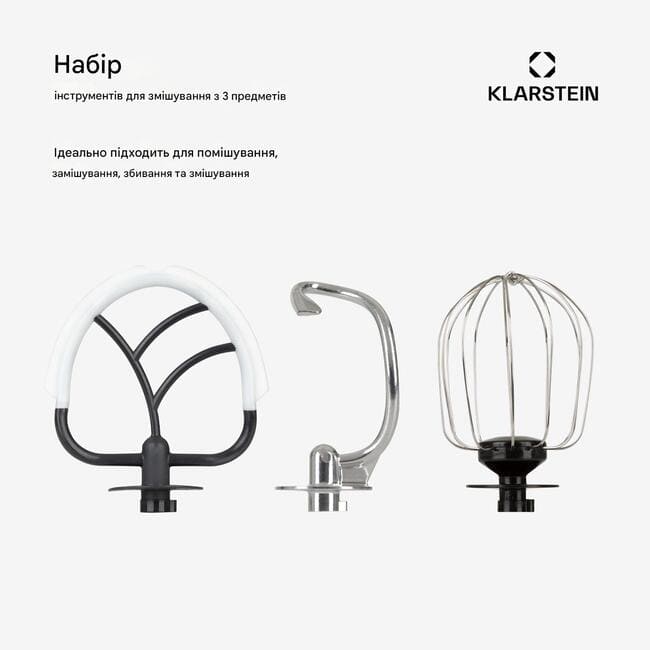 - 3 елементи для перемішування: гак для тіста/гачок для змішування/віночок