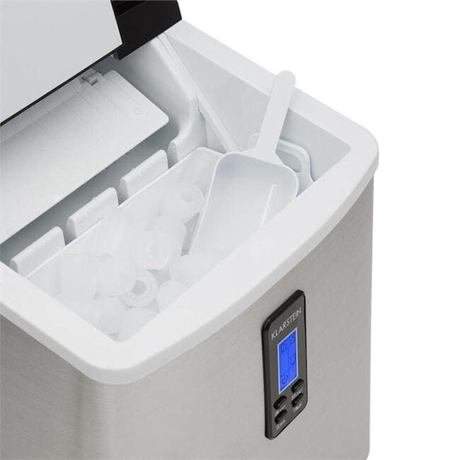 Продуктивний льодогенератор Klarstein здатний виготовляти до 9 кубиків льоду за один цикл тривалістю від 6 до 15 хвилин. Загальна продуктивність пристрою становить приблизно 15 кг льоду на добу, що дозволяє забезпечити постійний запас льоду для охолодження напоїв.