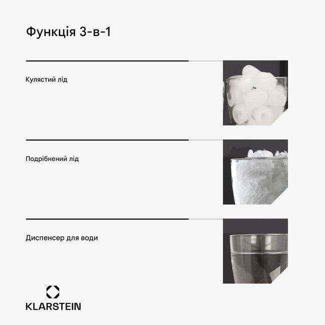 Льодогенератор Klarstein ArcticBlend 3-in-1 IceMaker є ідеальним рішенням для тих, кому потрібен лід у різних формах швидко та легко. Ідеальний для вечірок, кухні чи бару, цей прилад пропонує вражаючу продуктивність і універсальність. Завдяки великому резервуару для води об’ємом 6 літрів і здатності виробляти до 20 кг льоду на день ArcticBlend задовольнить усі ваші потреби. Ви можете виготовити до 12 кубиків льоду за цикл всього за 6-9 хвилин. Корпус з нержавіючої сталі не тільки забезпечує елегантний вигляд, але також забезпечує легке чищення та довговічність. Завдяки прозорому оглядовому вікну ви завжди маєте огляд виробництва кубиків льоду. ArcticBlend пропонує три функції в одному приладі: виробництво круглого льоду, подрібненого льоду та використання в якості диспенсера для води. Крім того, ним дуже легко керувати - або наповнивши резервуар для води, або підключивши його до крана. Практичні індикатори попередять вас, коли резервуар для води порожній або відсік для льоду повний, щоб ви завжди могли вчасно відреагувати. З льодогенератором Klarstein ArcticBlend 3-in-1 IceMaker ви можете насолоджуватися зручністю та гнучкістю під час приготування кубиків льоду.