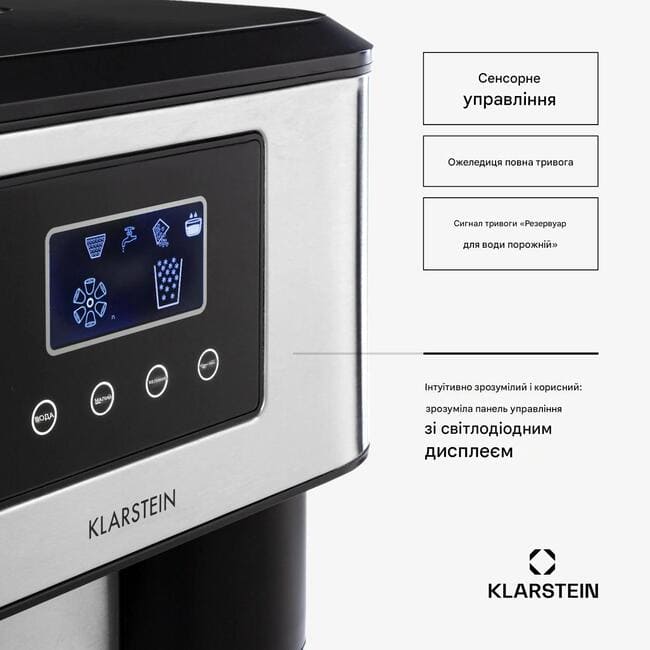 Потужна машина для виготовлення кубиків льоду Eiszeit Crush виробляє 15-18 кг кубиків льоду щодня. Льодогенератором дуже легко та зручно керувати за допомогою панелі керування за допомогою кнопок під чітким РК - дисплеєм, завдяки чому кубики льоду можна виготовляти малими та великими розмірами. Завдяки трьом різним функціям Eiszeit Crush не тільки подає кубики льоду, але, як випливає з назви, він також пропонує подрібнений лід на додаток до крижаної води. Великий резервуар для води об’ємом 1,8 л і ємність для кубиків льоду ємністю 600 г доступні для приготування будь-якої кількості крижаних напоїв. Вода подається вручну або шляхом підключення до крану за допомогою шланга, що входить у комплект. Якщо контейнер для льоду заповнений або рівень води занадто низький, льодогенератор подає сигнал, щоб ви могли швидко зреагувати. Після використання нечутливий корпус із передньою частиною з нержавіючої сталі легко чистити, а незмінний дизайн впишеться в будь-яку атмосферу.