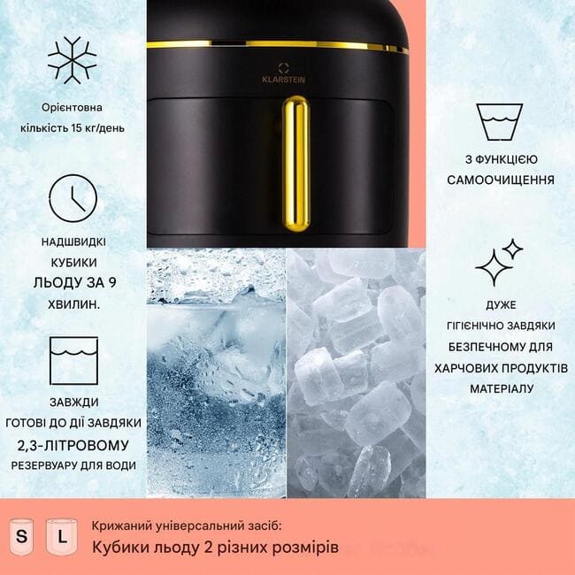 - Виготовлення приблизно 10 кубиків льоду (л) за 9 хвилин