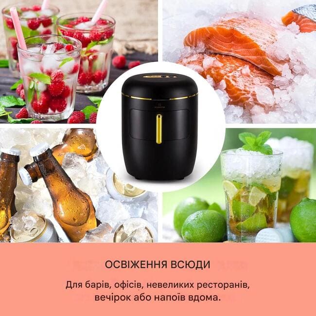 Час для крижаних напоїв: машина для виготовлення кубиків льоду Klarstein Passau створює свіжі кубики льоду в будь-який час, а завдяки її дизайну вона справді привертає увагу на будь-якій кухні чи в барі!