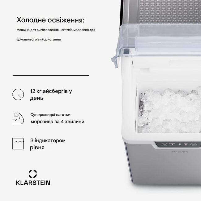 Льодогенератор Wallberg Nugget Ice Maker стане супутником для всіх любителів морозива. Ця машина для кубиків льоду не тільки виробляє до 12 кг кубиків льоду на день, але й може приготувати освіжаючі кубики льоду всього за 4 хвилини. Швидкий режим дозволяє миттєво готувати кубики льоду, що підходить для спонтанних потреб.