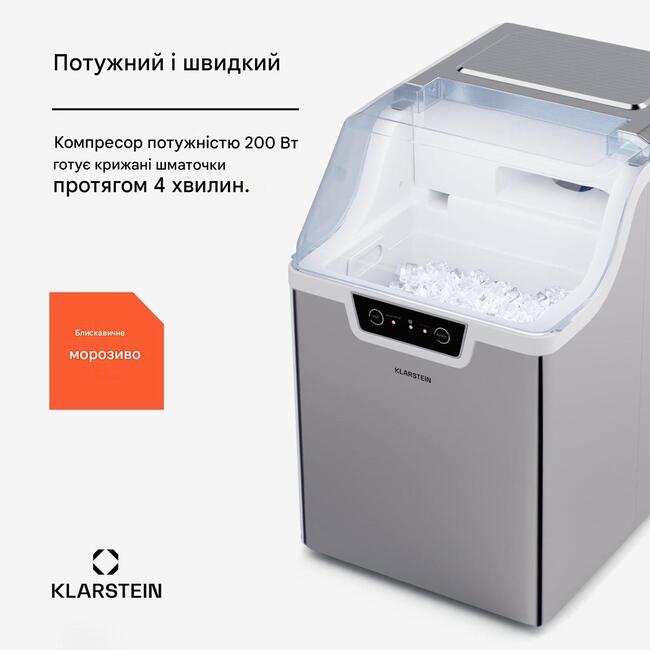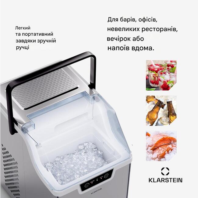 Завдяки потужному 200-ватному компресору льодогенератор Wallberg Nugget забезпечує не тільки швидке виробництво, але й надійну роботу. Ергономічна ручка полегшує транспортування, а мала вага робить його особливо мобільним. Низький рівень шуму забезпечує безперебійне насолоду кубиками льоду.