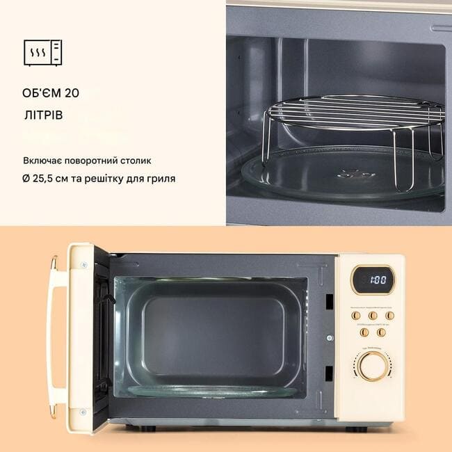 - 3 комбіновані функції для рівня гриль/мікрохвильова піч і чистий гриль