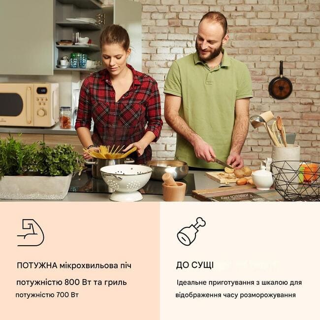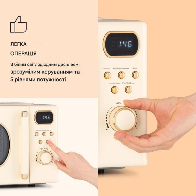 - 5 рівнів потужності мікрохвиль: низький, середній низький (розморожування), середній, середній високий, високий