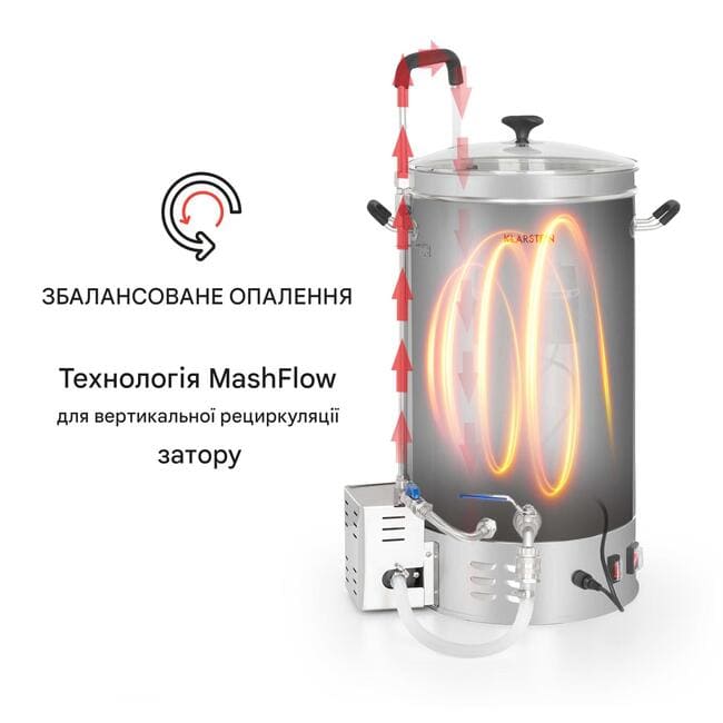 - Збалансоване нагрівання: технологія MashFlow для вертикальної циркуляції браги