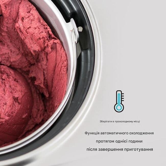 - Функція охолодження, яка запускається після приготування, запобігає таїнню морозива