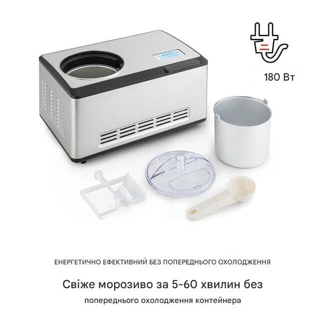 - Попереднє охолодження не потрібне: свіже морозиво через 5-60 хвилин без попереднього охолодження контейнера або інгредієнтів.